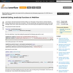 This tutorials exaplains how to call javascript functions from application code and how to call application methods from javascript.. Did you know that you can invoke javascript functions in a webview? i’ve made here a very basic example of invoking two functions, one with parameters and one. Cuelogic blog. home » mobile » android-native button to call js function. from html page “call java fn” which is loaded into webview, it will call.